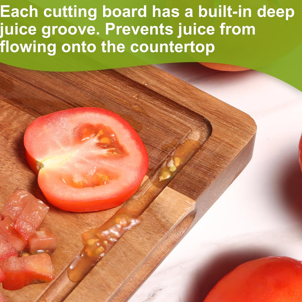 • Rich & Natural Grain: Each board showcases unique acacia wood patterns, adding rustic elegance to your kitchen.
