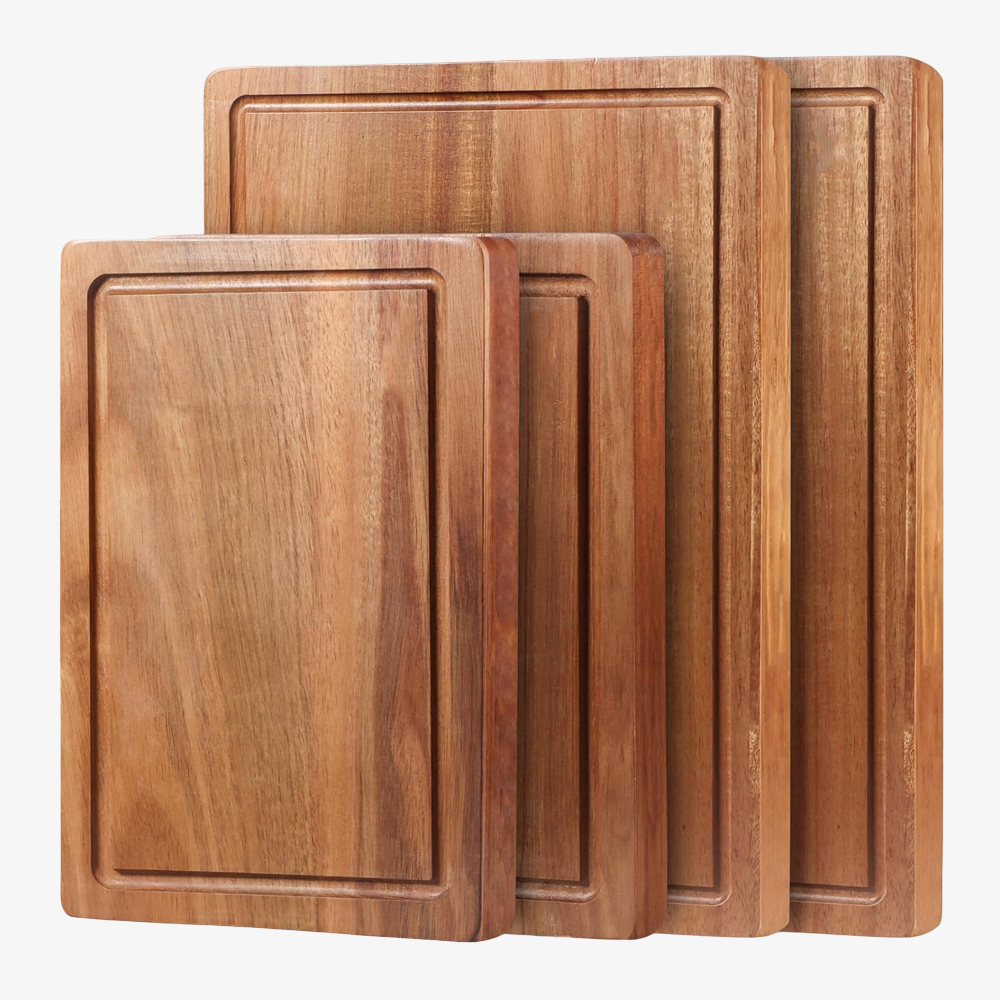 • Set of 4 Acacia Wood Boards: Includes four distinct sizes for versatile kitchen and serving needs.