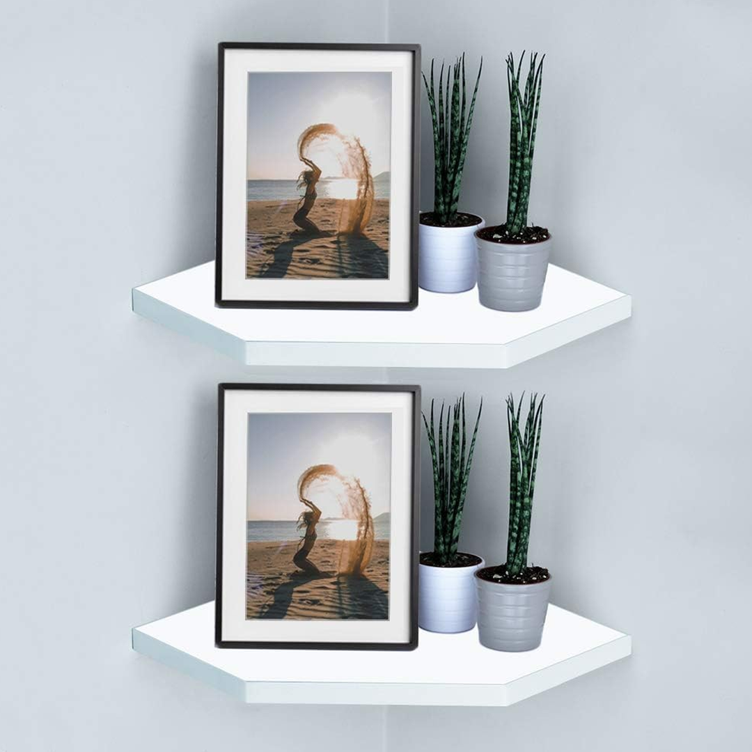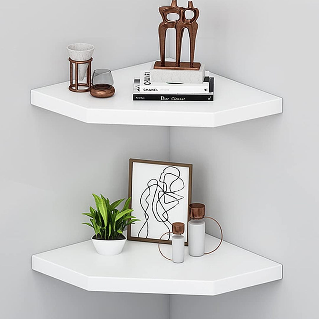 Set of 2 White Corner Floating Shelves – Space-Saving Pentagon Wall Display Ledges