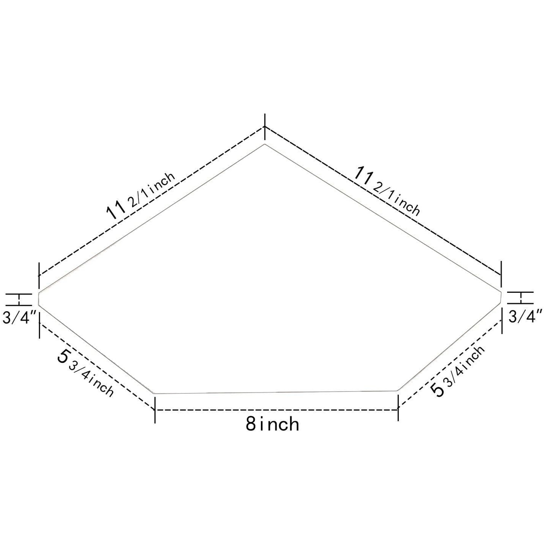 • Unique Pentagon Shape: The front of the shelf features two 3/4 inch bevels and an 8-inch front edge, creating a safer, slightly larger display area than a simple triangle.